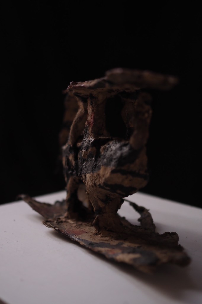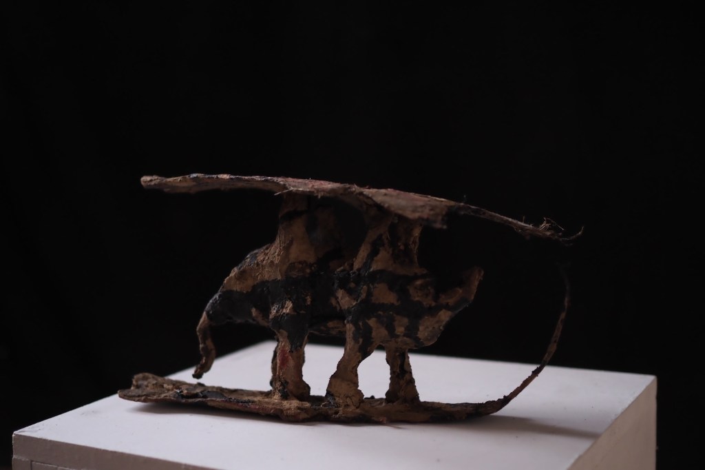 1970年、万博会場で岡本太郎は丹下健三の設計した屋根を突き破り「太陽の塔」を天へと突き出した。 その造形は時代の秩序を挑発し、未来への問いを空に放ったようだった。 一方、岡本ではない水島太郎である僕は、 上も下もない、ただそこにあるだけの、平和な作品を作った。 破るのではなく、ほどく。 突き破るのではなく、たゆたう。 それが僕の「向き合い方」なのかもしれない。 岡本太郎という爆発と、 水島太郎という静かな膨張。 そのあいだに横たわる時間に、僕は耳を澄ませている。