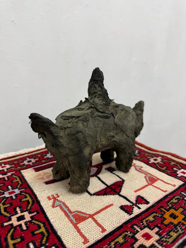 敷いている中央アジアの手織り絨毯が、作品にぬくもりと静けさを添えてくれています。【展覧会情報】