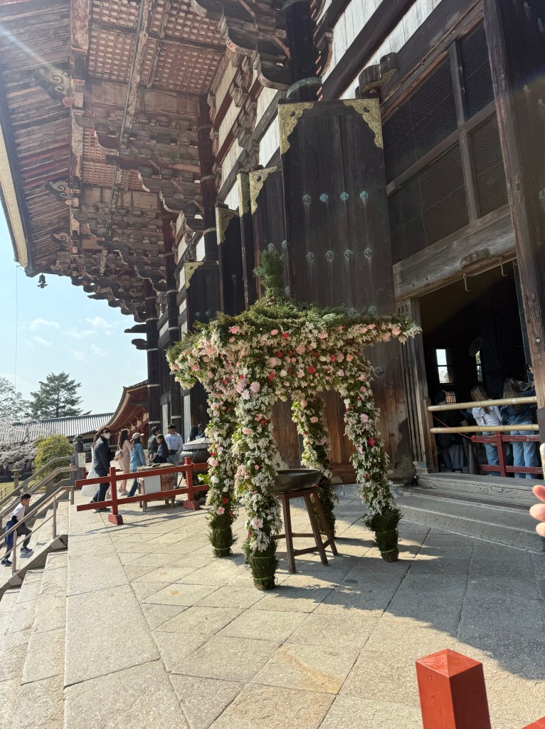 平野さんは、2025年の大阪・関西万博で「第九」を歌われるご予定とのこと。世界を舞台に活躍される姿に、刺激と勇気をいただきました。奈良の大仏殿では、ちょうど「花まつり」の準備が進められており、桜が満開でとても美しい風景が広がっていました。