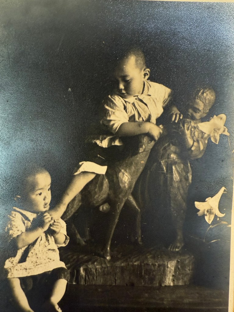 写っているのは、まだ幼い頃の父。そして、そのそばには祖父の作品。
